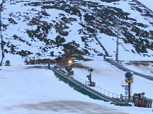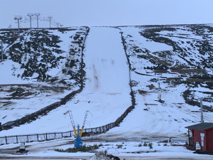 Nursery slopes have good cover, but slightly muddy looking due to farmed snow from the carpark!