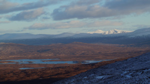 |  Epic views across Rannoch Moor, which contrasts spectacularly with the snow covered peaks surrounding it.