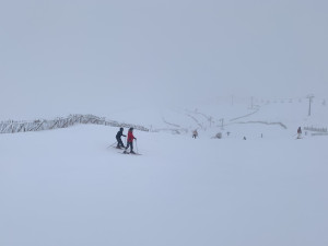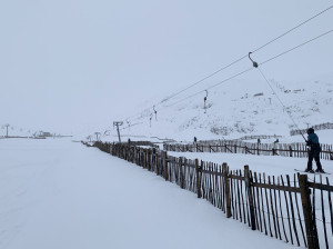 There are also some nice mellow stashes of new snow on the Coire Pollach Run to skiers right of the tow fence and on the track down the wrong side of the Old Mugs Alley fencing.