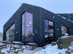 Big snowflakes at the base on Sunday morning. The White Corries Cafe will be open for breakfast from 8am!