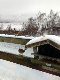 Two robins more interested in the mealworms than squabbling! There was a third, but couldn't get all 3 in a single frame!