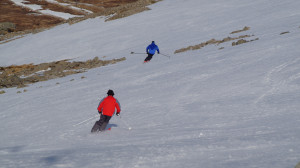 |  Skiers hitting the Rock Garden, which had a firmer grippy surface despite catching the afternoon sun.