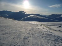 Snow conditions were very good though with some hard/icy patches in the shade. The west facing slopes especially were nicely pisted packed powder. The runs off Caenlochan were my pick of the day when the sun was on them in the early afternoon. It was slightly busier than for a normal weekday, but there weren't any significant queues.
