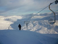 Good conditions on most of the runs with decent cover between the fences, patchy outwith the fenced runs. All open except Glas maol (cover loooked a bit thin) Cairnwell chair (frozen switch), Carn Aosda (needs barring up) and Mael Odhar (tRack needs more snow). Good skiing on packed powders with the Tiger and Coire Fion Bowl the two best runs for me.