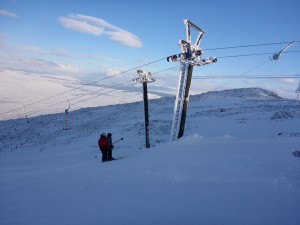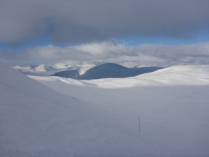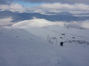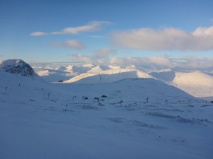 All open runs have an excellent cover of skier and machine packed snow with deep deposits of windblown softer snow and plenty of fresh turns still possible. An overnight light covering of snow had freshened up conditions and both the black and red Access runs to the car park were giving the excellent skiing as were the Main Basin, Happy Valley and the Wall. Thrombosis and all the middle and lower runs are full and wide. Spring Run and Etive Glades are still closed due to icy sections and Flypaper and East ridge due to considerable avalanche risk. Rannoch Glades just needs more snow in the right southerly or easterly direction.