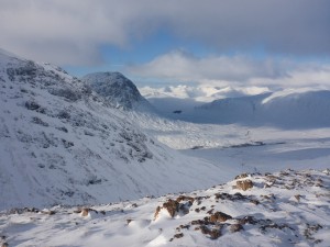 Looking over the Cam Glen to the Buachaille and Ben Nevis