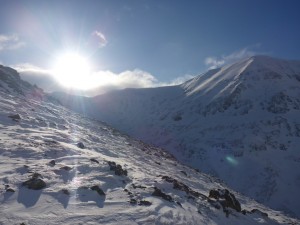 |  The sun setting over the bealach to Creise
