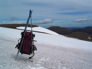 Gained Macdui Summit by 11am. The overnight chill had set up firm snow, with just top inch soft. Skis ran nicely, with just slight stickiness easily overcome by gaining momentum.